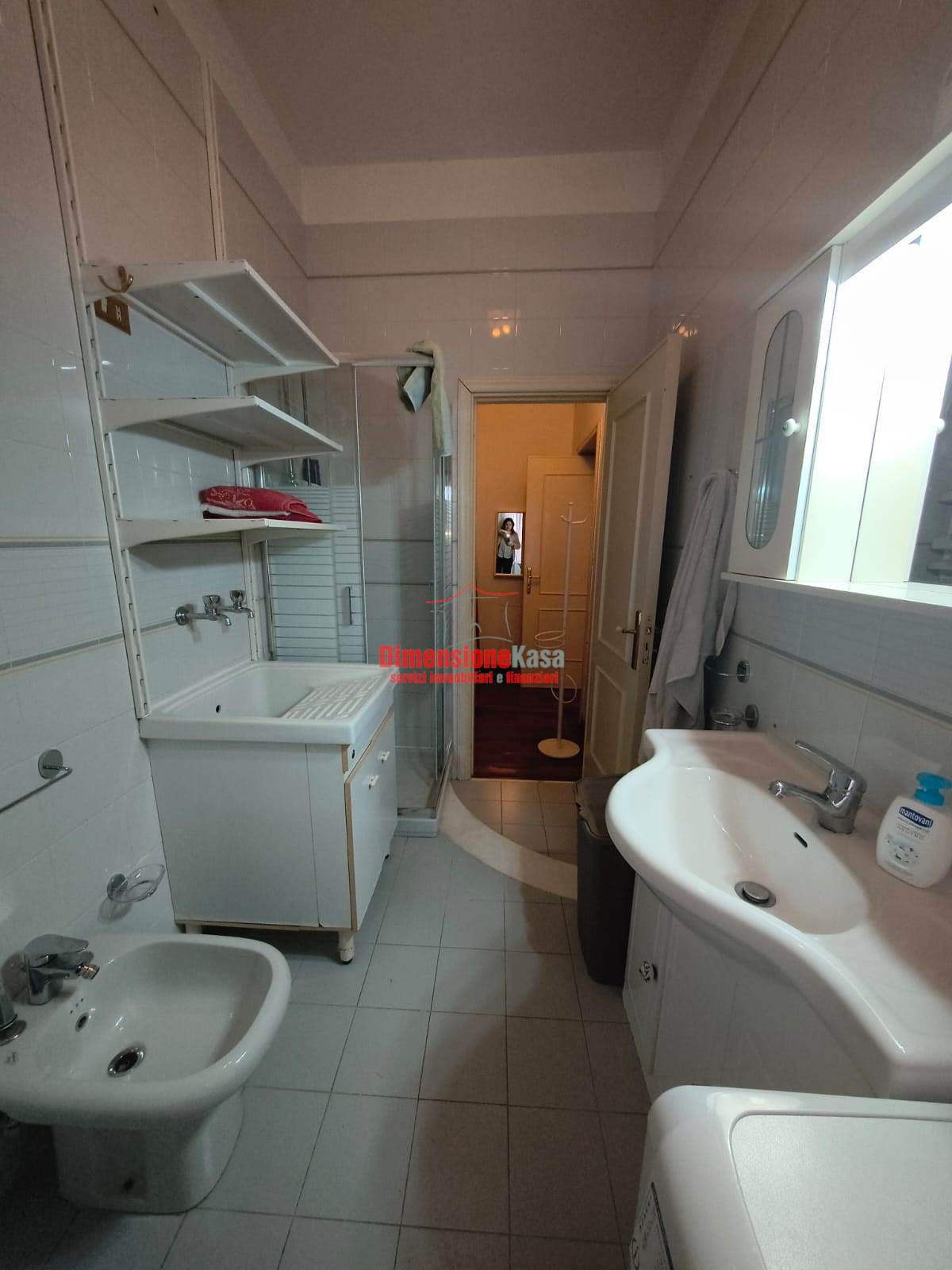 Bagno con doccia e lavatrice