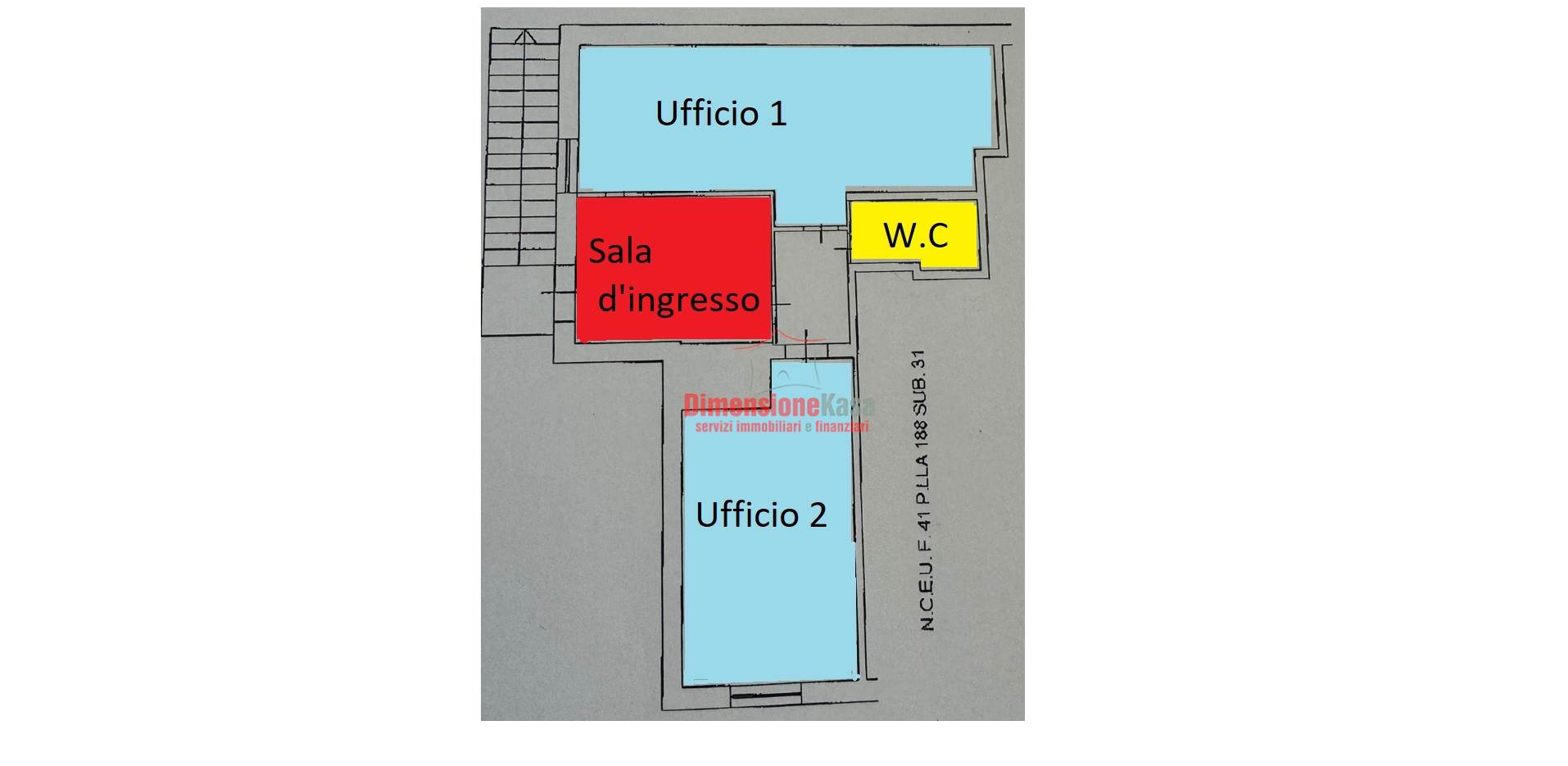 - Due ambienti finestrati ideali come uffici, studi medici o aree operative come call center.