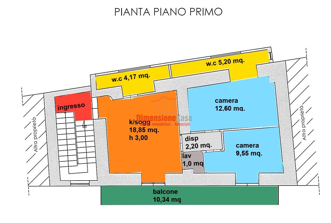 🔹 Appartamento al piano primo di 60 MQ + balconi, composto da: ingresso, ampia zona living, due camere da letto, disimpegno, lavanderia e doppi servizi.