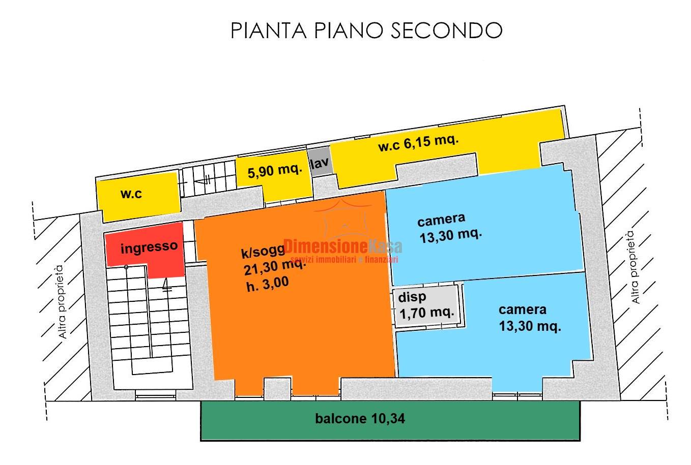 🔹 Appartamento al piano secondo di 70 MQ + balconi, composto da: ingresso, luminosa zona living, due camere da letto, disimpegno, lavanderia e doppi servizi.